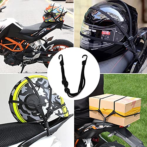 Contenuto della confezione: la confezione include 2 pezzi di cordino elastico per casco, 23,62 pollici/60 cm (include la lunghezza dei ganci). Perfetto per fissare caschi da moto, bagagli e custodie.
