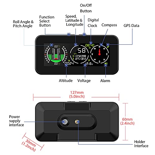 MOTOCOCHE GPS Inclinometro Digitale Auto per Veicoli Fuoristrada DC10v-30v, Inclinometro Jeep Tachimetro Multifunzione Camper con Visualizzazione Delle Coordinate