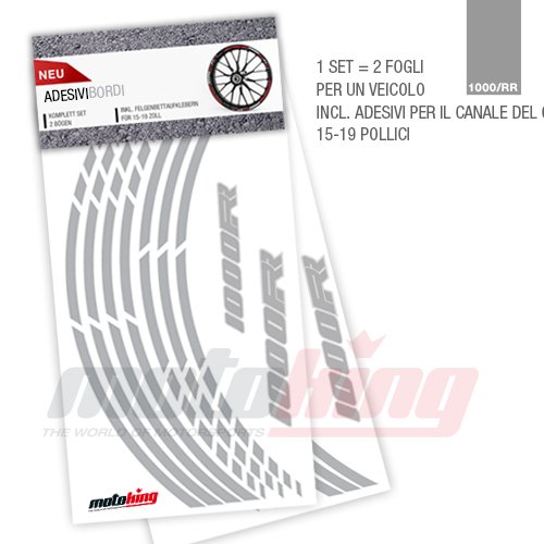 Motoking Adesivi per Il Bordo del cerchione RS - Kit Completo per 15" 16" 17" 18" 19" - Ampia Scelta di Colori e Stili