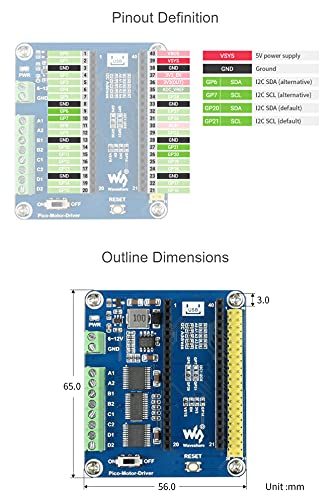 DC Motor Driver Module HAT For Raspberry Pi Pico Series, Driving Up To 4x DC Motors, I2C controlled, up to 3A Output