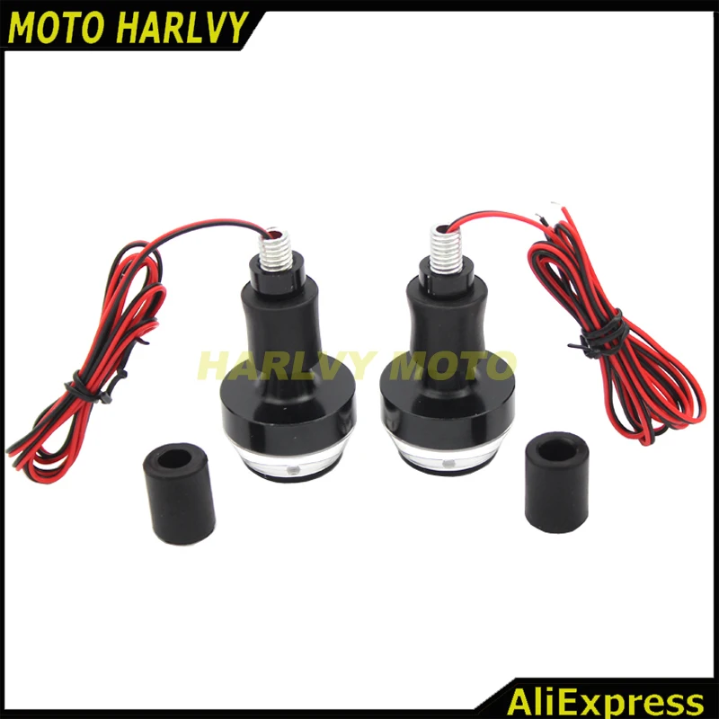 2 PCS CNC Motorcycle Amber LED Handle Bar End Indicator Grip Plug Turn Signal Light FOR 22mm Handlebar