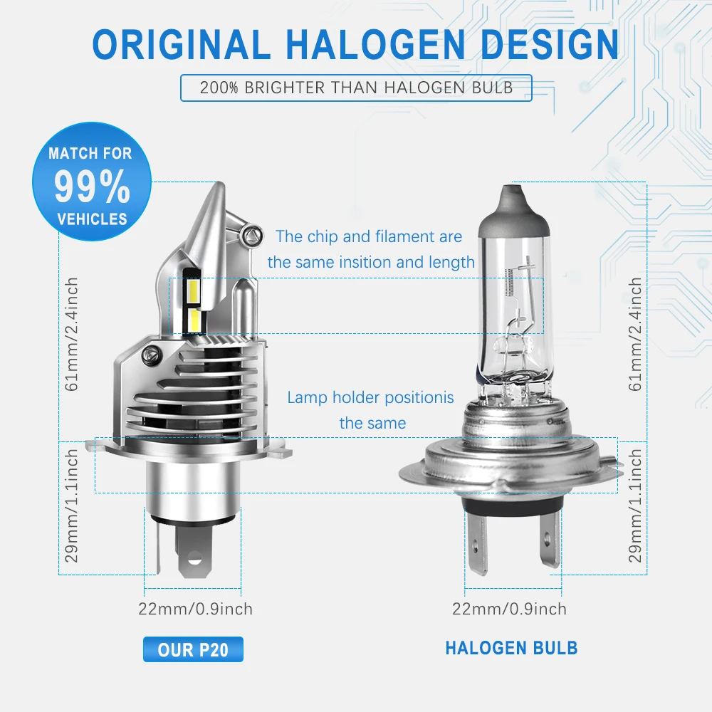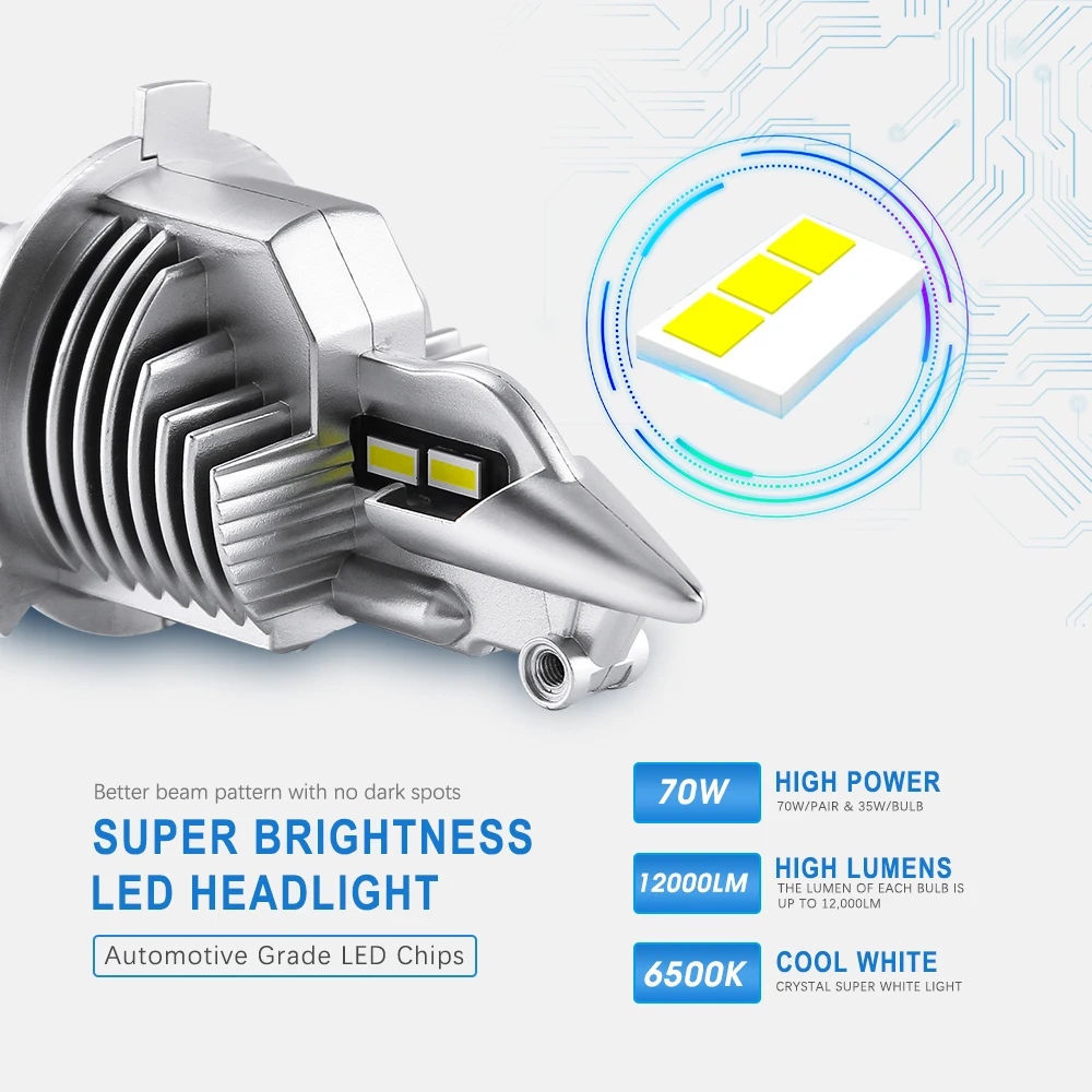 HL LED H4 Motorcycle Headlight Bulb 6500K LED Light High Beam + Low Beam H4 LED Bulb Replacement Lamp for Auto 12V 24V