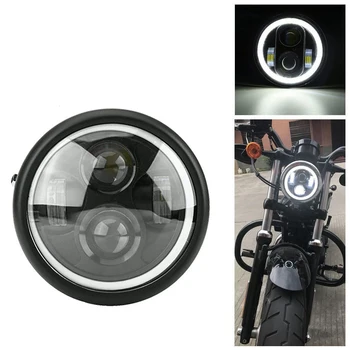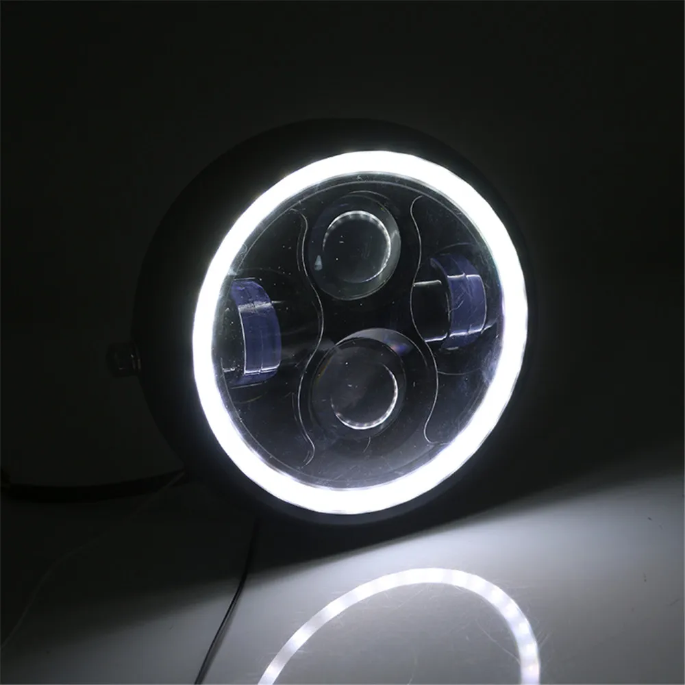 6.5" Motorcycle LED Headlight Hi&Lo HeadLamp Bulb DRL With Angel Ring for Harley Sportster Cafe Racer Bobber Iron 883