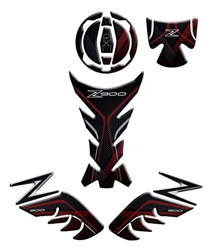 Motorcycle KIT PARASERBATOIO FRONTALE E LATERALE, PROTEZIONE TAPPO E VANO CHIAVE RESINATO ADESIVO EFFETTO 3D, COMPATIBILE con KAWASAKI Z900 (ROSSO)