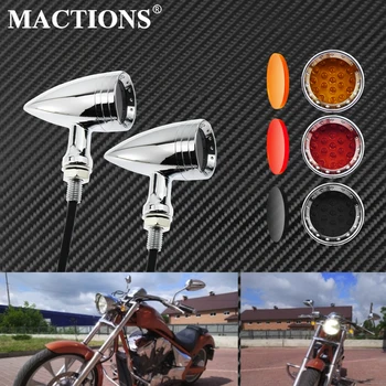 Motorcycle LED Turn Signal Bullet Blinker Orange & Red Indicator Lights Gray/Orange/Red Lens 10mm Vintage Chrome For Harley