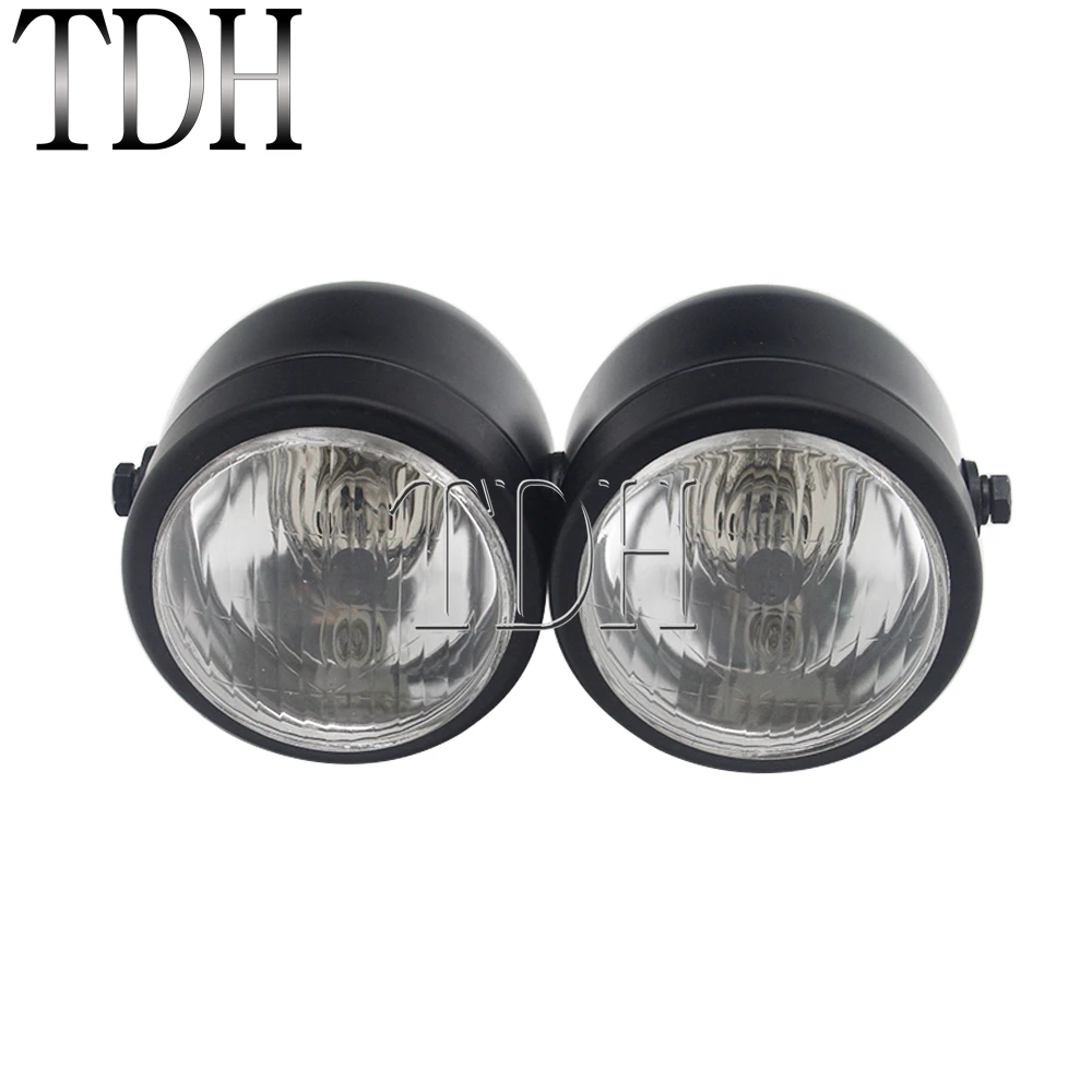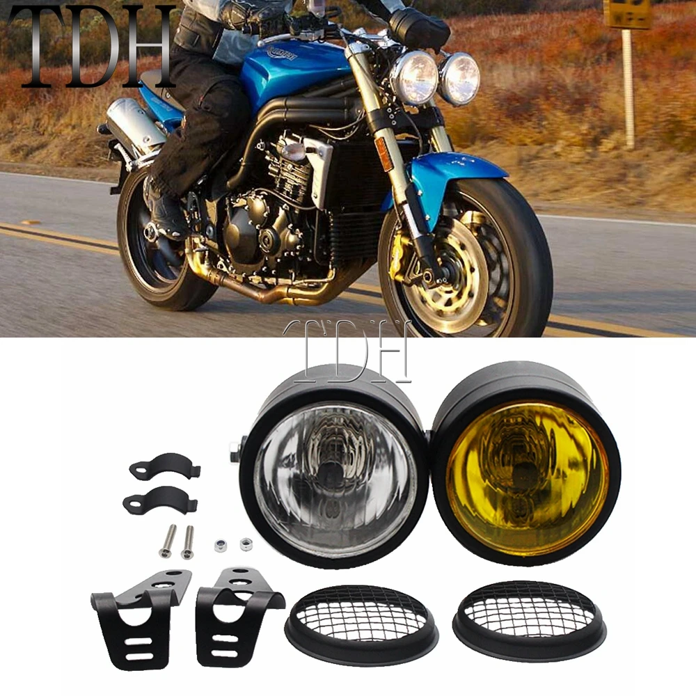 Motorcycle Twin Front Headlight Lamp W/ Bracket Mesh Grill Dual Streetfighter Headlights For Harley Cafe Racer Honda Yamaha