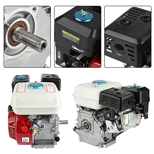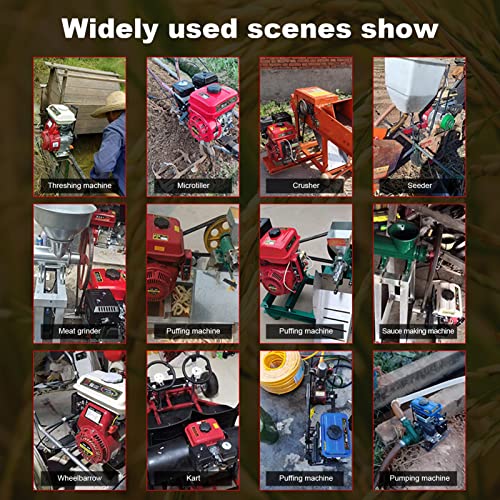 【4 tempi Ampiamente Utilizzati】 Questo motore a benzina a 4 tempi con 6,5 HP è un motore standard raffreddato ad aria per l'uso nelle più comuni attrezzature industriali e agricole, come motozappe, idropulitrici e altro. È ideale come alternativa a pompe, rulli piatti, raccogli legna, onde singole, a strappo, spazzatrici stradali, spazzaneve, generatori e molti altri motori a benzina.