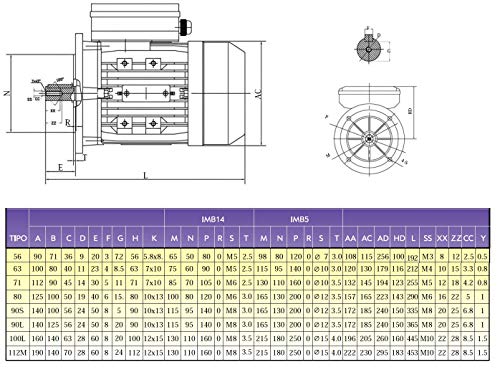 Dimensioni del motore 90L / accoppiamento a flangia B5 200mm