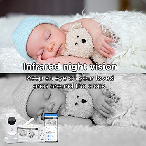 Motorola Nursery Ease 44 Connect,Baby Monitor WiFi con fotocamera,Display video Baby Monitor da 4.3 pollici,App Hubble,Visione notturna, ninne nanne, monitoraggio della temperatura ambiente,Bianco