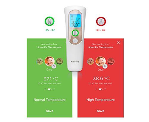 Motorola termometro frontale a distanza smart con monitoraggio della temperatura - Sincronizzazione in tempo reale con lo smartphone tramite Bluetooth - Compatibile con iOS e Android