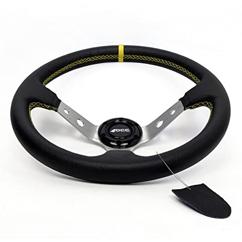 OCC MOTORSPORT VOLANTE OFFSET MODELLO TRACK SIMILPELLE BRACCI ARGENTO - 90 MM PROFONDITÀ - 350MM (14 POLLICI)