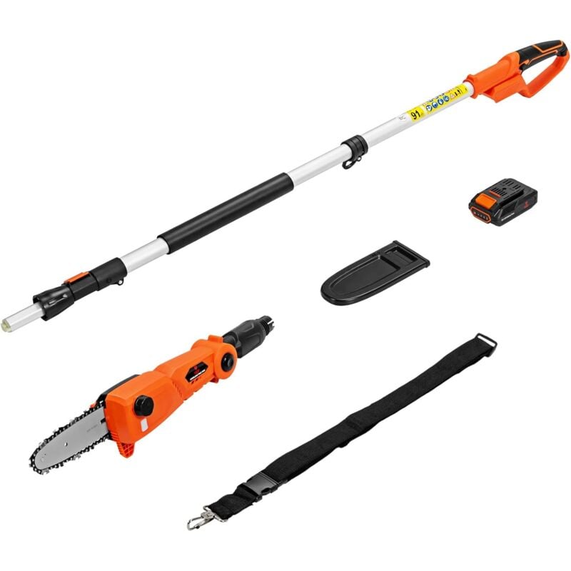 INFORMAZIONI ��Motosega telescopica 271,5 cm��Il design telescopico con i morsetti che si capovolgono e si bloccano permettendo di regolare velocemente la lunghezza del palo per adattarsi ad alberi con varie altezze. Pesa solo 3,7 kg ed è attrezzo comodo per tagliare i rami posteriori degli alberi e realizzare qualche altro lavoro in giardino. ��Motore potente��La motosega senza fili con catena in acciaio inox e motore potente raggiunge al velocità di 4,5 m/s senza vibrare per poter fare giardinaggio facilmente. Inoltre, la tracolla smontabile e la maniglia ausiliaria facile da afferrare semplificano l'esperienza d'uso. ��4 posizioni per gli angoli di taglio��La testina della motosega si può inclinare in 4 posizioni premendo il pulsante di regolazione dell'angolo e facilita il taglio dei rami storti;