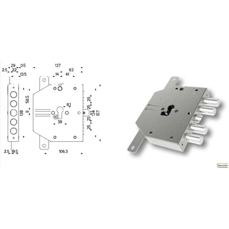 Serratura mottura per porte blindate megablock - int. 25 mm destra spingere La serratura mottura per porte blindate MEGABLOCK è una serratura per cilindro europeo, compatibile con serrature Megablock, dotata di doppio bloccaggio anti-effrazione, triplice con mezzo giro per cilindro e con interasse 25 mm.