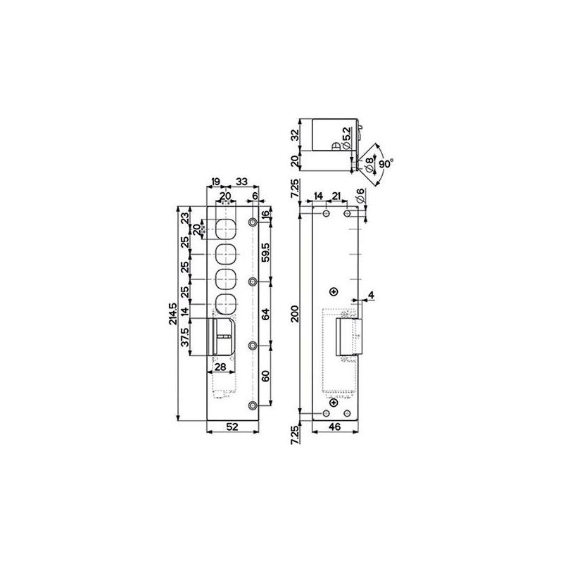 Codice: 8010728242226 Marca: MOTTURA. Acciaio finitura marrone Piastra angolare apertura destra sinistra 4 fori catenacci Dimensioni mm 46