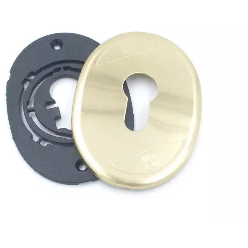 Mostrina interna misura 65x90 mm. per cilindro europeo completa di supporti in plastica per il fissaggio. Finitura ottone.