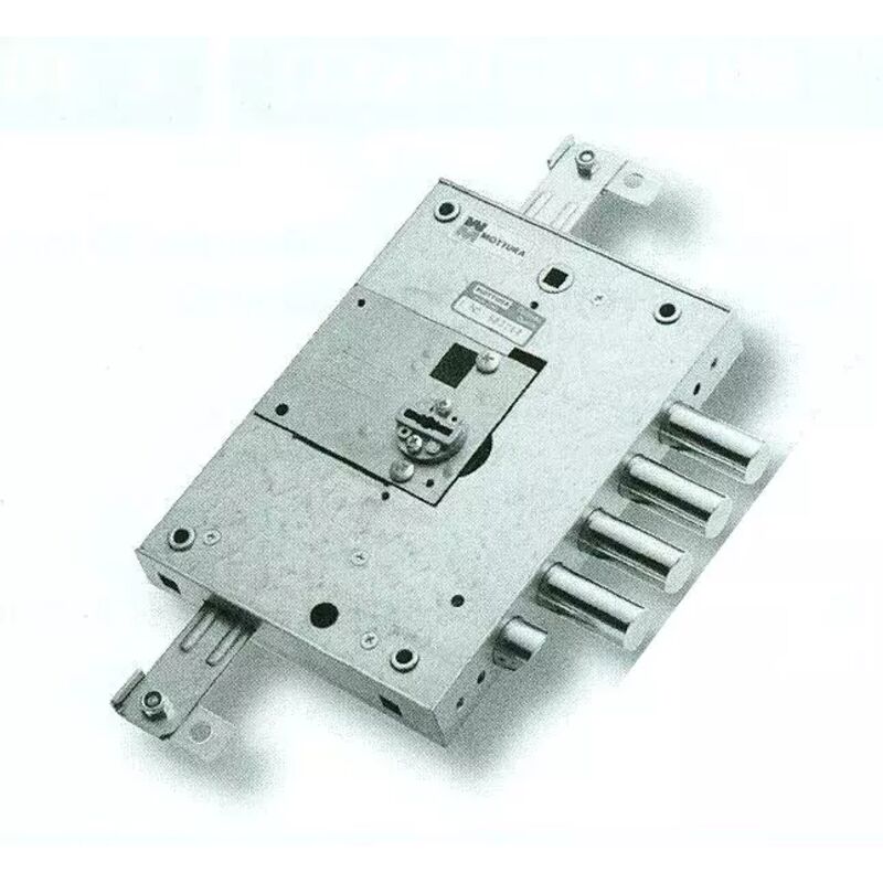 Serratura di sicurezza applicata per porte blindate DIERRE 89K571DRSB SINISTRA a chiave doppia mappa e mezzo giro comandato da quadro maniglia e da chiave. Chiusura triplice: 1 punto di chiusura composto da 4 chiavistelli con escursione di 36 mm e mezzo scatto, 1 punto di chiusura verso l'alto e 1 verso il basso entrambi con aste. Corsa aste 20 mm. Sbalzi aste 24 mm. Dimensioni scatola largh.146 mm. alt.206 spess.30,5 mm. Entrata chiave mm.73. La serratura viene fissata tramite 4 boccole d.7 mm. Viene fornita con nucleo Quick con 3 chiavi mm.40 in bista sigillata. Finitura: zincata. Sistema anti-intrusione: riforzi sui chiavistelli. La serratura viene fornita con bocchetta esterna (anod.bronzo), bocchetta interna(anod.bronzo) e nucleo .Info: la mano della serratura viene stabilita guardando lo schema nelle foto (la fotografia principale si riferisce alla versione DESTRA). ATTENZIONE: le aste e gli accessori non sono compresi.