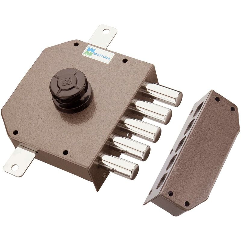 Serratura da applicare con cilindro a pompa Ø mm. 30. Chiusura triplice senza mezzogiro, apertura interna con pomolo, verniciata, senza aste, 3 chiavi.