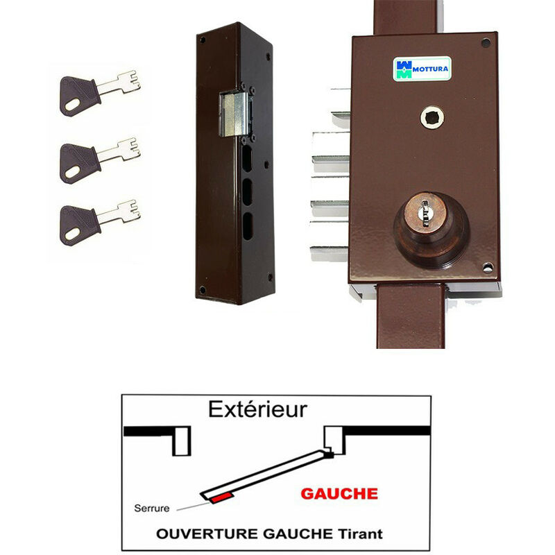 Mottura 448: Serrature di altissima qualità. Dimensioni della custodia 155 x 91 x 30 mm. Corsa del perno 24 mm. Perni in acciaio temprato Corsa barre 15 mm. Aste regolabili. Niente da tagliare. Apertura tramite maniglia in dotazione, diametro quadrato 7 mm. Doppia pompa interna/esterna in acciaio al molibdeno. 50 mm standard. Finitura: marrone o bianco. La serratura viene consegnata con: 4 chiavi a pompa 1 chiusura serratura + 1 chiusura alto + 1 chiusura a piano Scatola da 1 bar (lunghezza massima 2630 mm) viti e accessori vari