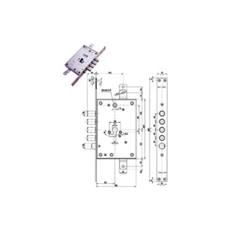 Mm.63 sx (85771s28n) scatola mm.136x206h. in acciaio con rivestimento in zinco, piastra mm.356x35 - catenacci e scrocco in acciaio nichelato, 2 mandate, quadro maniglia passante - cilindro e aste non compresi Categoria merceologica: Serrature, chiusure di sicurezza e accessori - Sicurezza - Serrature per porte blindate