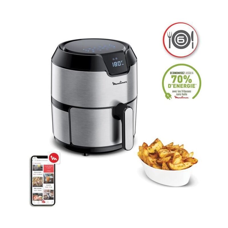 Dotata di tecnologia Pulsed Air che rilascia un flusso di aria calda ciclonica per cibi ultra croccanti, la friggitrice Easy Fry Digital di Moulinex offre 8 menu preprogrammati con poco o nessun olio. Il suo esclusivo cestino offre una capacità XL (6 persone), il suo touch screen è pratico e il suo design compatto.