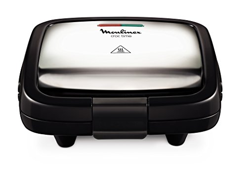Moulinex SZ192D Croc time, Griglia con Piastre Rivestite di Materiale Antiaderente, per Scaldare Panini e Grigliare la Carne o le Verdure, Dotata di Impugnatura Isolata e Fermo di Chiusura