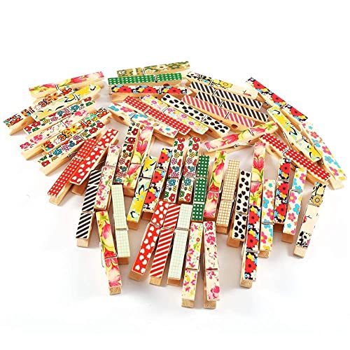 MOUMOUTEN Clip per Foto in Legno, Mollett Legno 50 Pezzi Mini Clip Legno Dipinte Clip Vestiti Legno Colorato Clip Foto con Mollette Carta Appendere Foto Decorazione Artigianale(7.3 * 0.1CM)