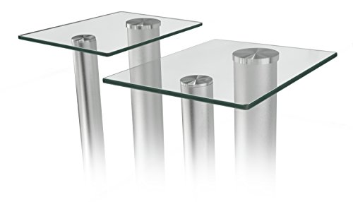 Mount-It! Supporti da Pavimento per Altoparlanti Surround Home Theater, 18 Pollici di Altezza, 22 libbre di capacità, Vetro temperato e Alluminio, Trasparente e Argento, Una Coppia