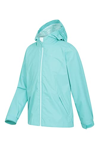 Mountain Warehouse Luna Scherza Il Rivestimento Impermeabile - Rivestimento dei Bambini Leggeri, Cappotto registrato della Pioggia delle giunture, Tasche Chiuse Verde-Blu 7-8 Anni