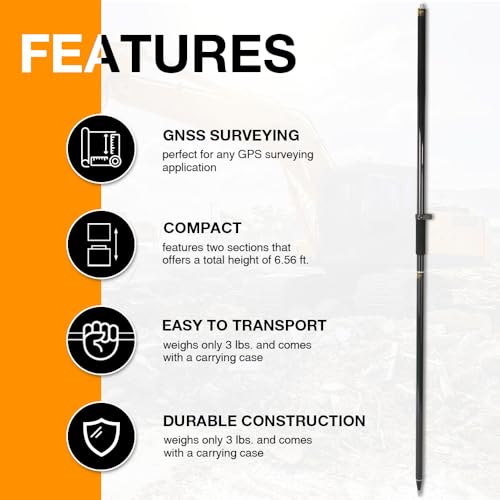 Precisione a portata di mano: pali GPS in fibra di carbonio, 2 m x 2 sezioni, collegati da vite da 5/8". Questo accessorio 2M a 2 sezioni è la chiave per ottenere misurazioni precise. Precisione a portata di mano: eleva il tuo gioco di rilevamento e ingegneria con il Mountlaser GPS Pole.