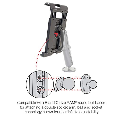 Il supporto RAM Tab-Tite è compatibile con qualsiasi tablet all'interno delle dimensioni elencate: Gamma di altezza: 8,3 "- 11", Gamma di larghezza: 5" - 5,9", Gamma di profondità: 0,3" - 0,67"