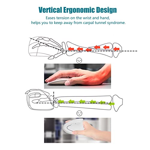 Mouse da Gioco Verticale Ergonomico Wireless, Mouse Ergonomico Bluetooth Ricaricabile a 1600 DPI Ottico da 2,4 GHz Nessun Ritardo per PC Laptop(bianco)