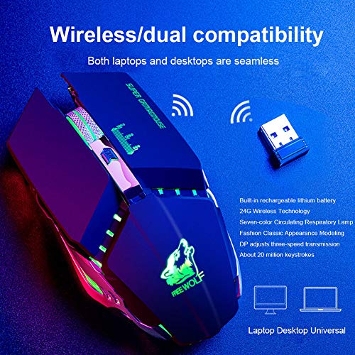 Mouse da gioco wireless 2.4G USB per PC Laptop 7 colori LED Backlit
