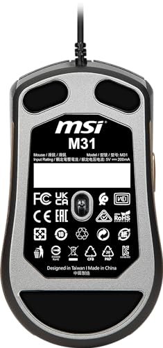 MSI M31 Mouse USB Simmetrico, 7 tasti, Sensore Ottico 3600 DPI, resistente fino a 3 milioni di click