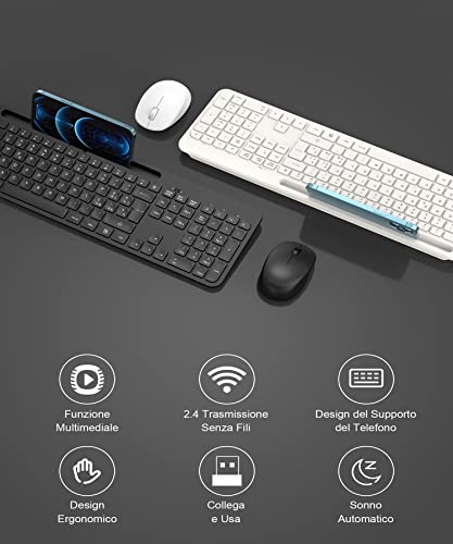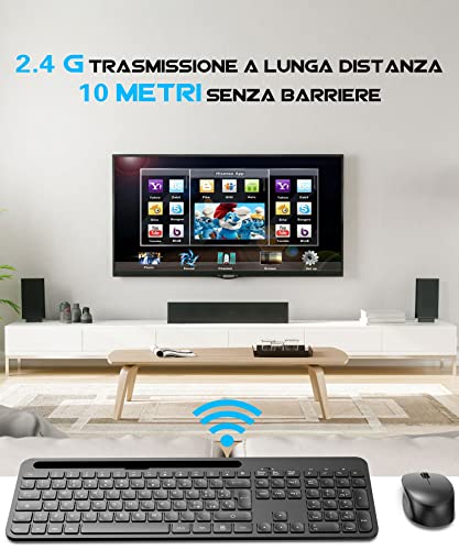 Mouse e Tastiera Wireless, TedGem 2.4G Set Tastiera e Mouse Wireless per PC/Laptop/Computer/Desktop (Black)