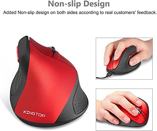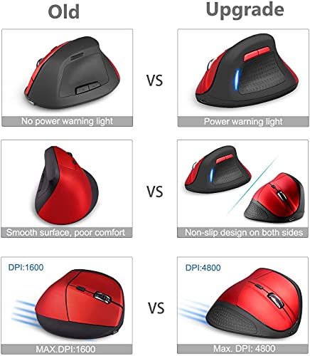 Mouse Verticale Wireless / Con Cavo IDESION Mouse Ergonomico Wireless 2.4G 4800 DPI 6 livelli regolabile Esecuzione Verticale Ergonomico - Previene Il Disturbo Del Tunnel Carpale 5 Tasti Nero Rosso