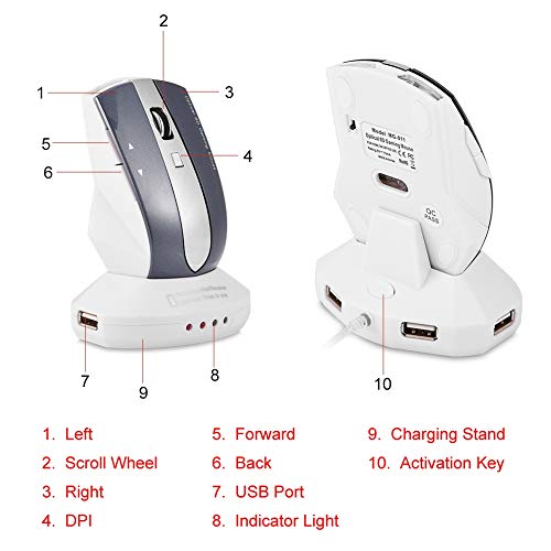 Mouse wireless Mouse ottico ricaricabile Mouse da gioco con base di ricarica Hub USB a 3 porte