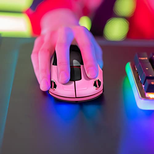 Mouse Wireless, 2,4 GHz Mouse Ottico Senza Fili a Forma di Auto 800-1200-1600 DPI Mouse Gaming per Mac/ME/Windows PC/Tablet Gaming Office (Rosa)