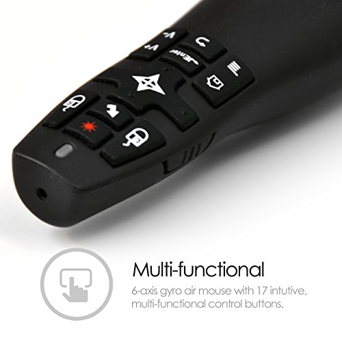 Air Mouse and Wireless Presenter with Red Laser Pointer 2 in 1 2.4Ghz, USB 2.0 Nano Receiver, Replaceable Rechargeable Batteries 2x AA - Slide show Controls for Projector PowerPoint Presentation Remote Control - PC Slide Clicker works with IPAD MacOS WINDOWS XP-10 LINUX SMART TV'S ANDROID COMPATIBILE