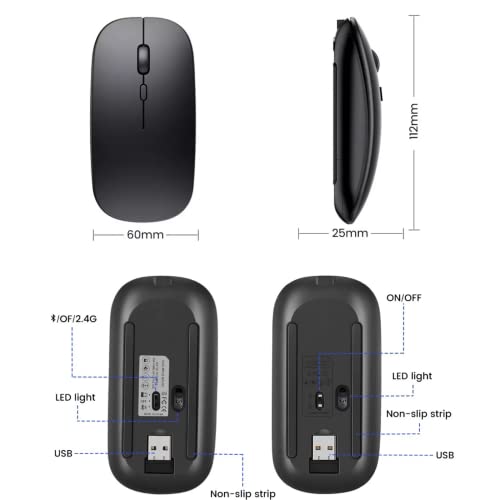 Mouse wireless, silenzioso 2,4G + Bluetooth e ricevitore USB per computer PC, portatile e tablet di Windows, iOS e Android, 3 livelli DPI regolabili
