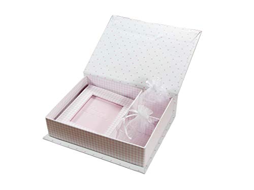 All'interno della scatola c'è una cornice e un kit per l'impronta in argilla per catturare la forma dei piedi o delle mani dei vostri bambini per un ricordo speciale e duraturo