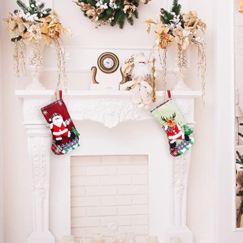 Mousyee Calze di Natale da Appendere, 2 Pezzi Calza Natalizia, Calze di Natale da Appendere per la Decorazione Dellalbero Sacchetto Regalo per Calze di Natale (Babbo Natale e Renne)