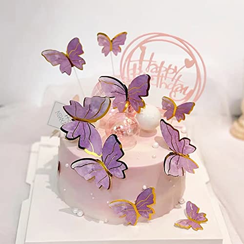 Quantità abbondante: la confezione contiene 10 farfalle con bordo dorato a strisce rosa e 10 farfalle con bordo dorato a strisce viola, La farfalle decorazione torte è abbondante in quantità, ed è una squisita decorazione per feste a tema compleanno.