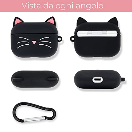 Mouzor Airpods Pro Custodia, Simpatico Cartone Animato 3D Animale Nero Baffo Gatto Protezione Completa Antiurto Custodia Morbida in Silicone con Moschettone per Bambini Ragazze Ragazzi Donne