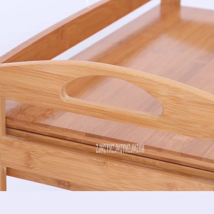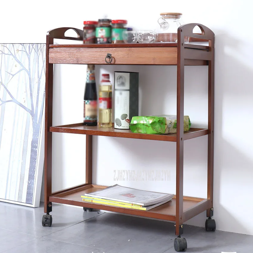 New Movable Bamboo Dining Trolley 3/4 Layer Tea Dining Cart Small Living Room Side Cabinet Beauty Salon Trolley Kitchen Shelf