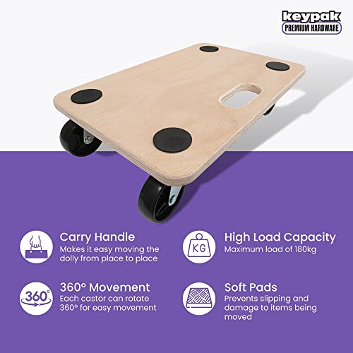 Move-It Carrello con piattaforma con cuscinetti antiscivolo, resistente, per spostare mobili e attrezzature, capacità di carico 180 kg, in legno (45 x 30 cm)