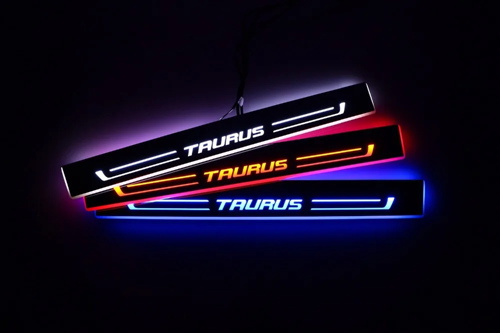 Led Moving Door Scuff Nerf Bars & Running Boards Door Sill Plate Overlays Linings for Ford Taurus 2015-16, Moving Light