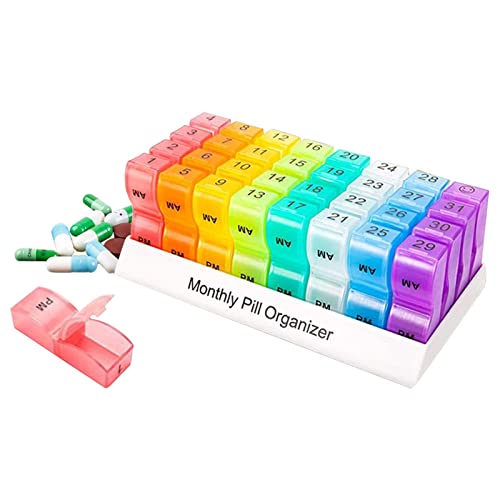MOVKZACV - Contenitore per pillole, portatile, colorato, per pillole, vitamine, tutti i giorni, AM PM un mese, organizer per pillole, 32 scomparti per vitamine e compresse