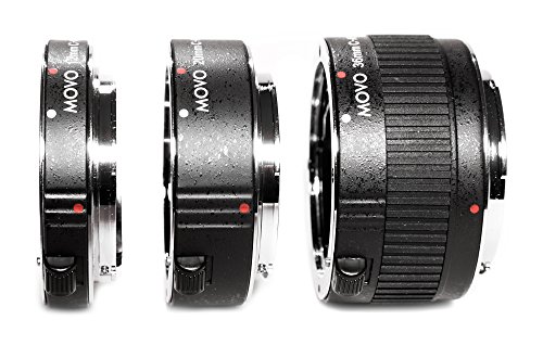 Movo MT-C68 - Set di 3 tubi di estensione macro AF cromati per fotocamera Canon EOS DSLR con tubi da 12 mm, 20 mm e 36 mm