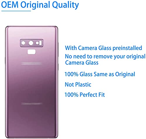 MovTEK Vetro Posteriore Copribatteria Originale per Samsung Note 9 N960F Coperchio Batteria con Vetro Fotocamera e Strumenti (Viola Lavanda)