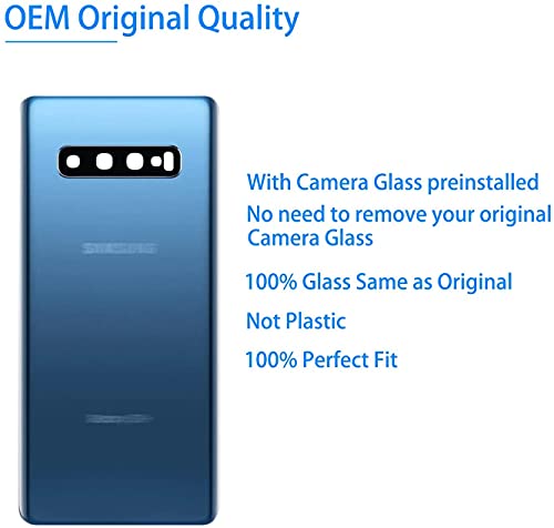 MovTEK Vetro Posteriore Copribatteria Originale per Samsung S10+ Plus G975F Coperchio Batteria con Vetro Fotocamera e Strumenti (Blu Prisma)
